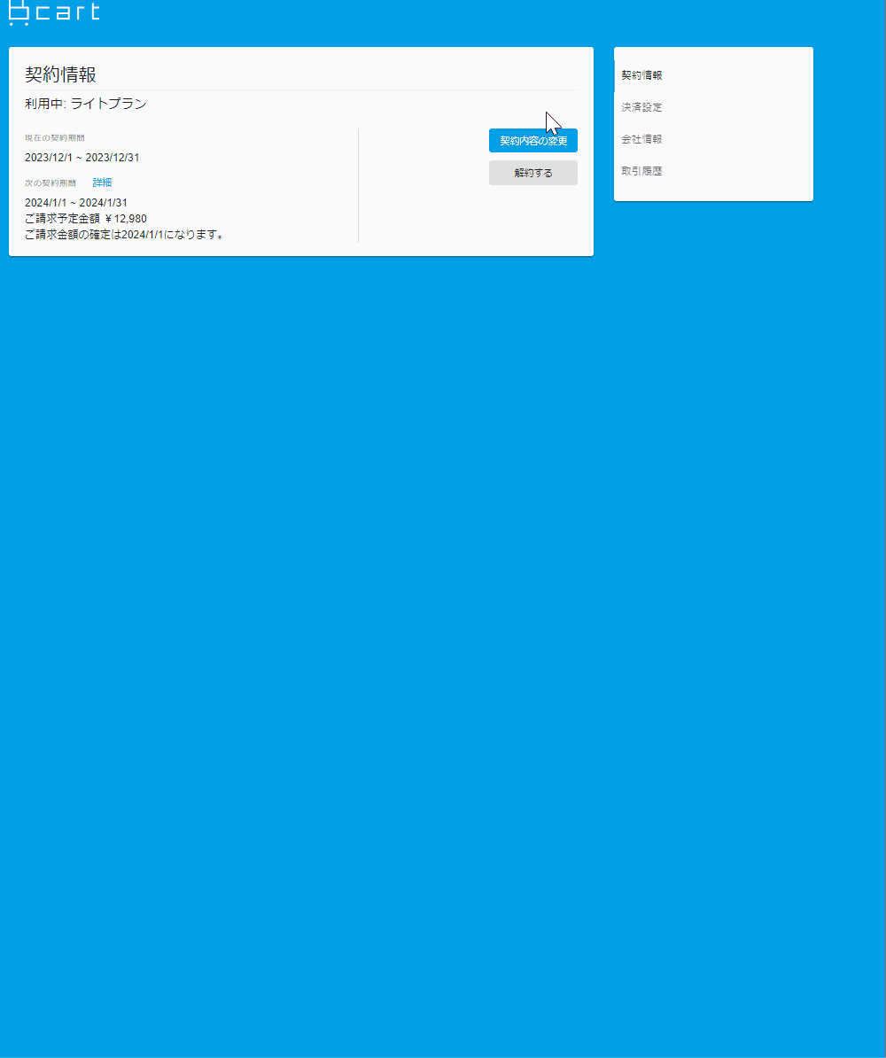 ・「契約情報ページ」へ遷移します。