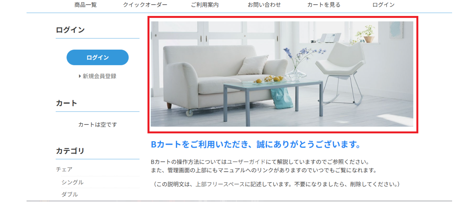 ■サイト中部フリースペース「Bカートをご利用いただき、誠にありがとうございます。」
