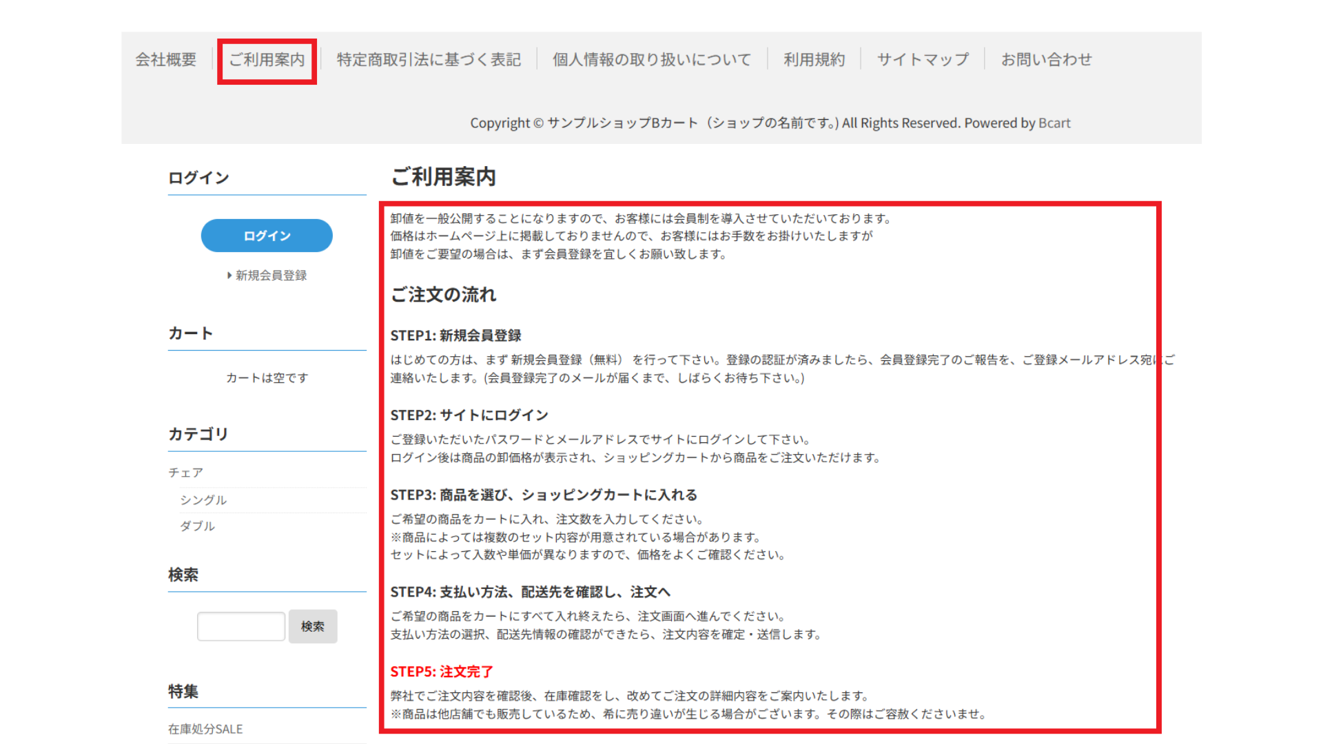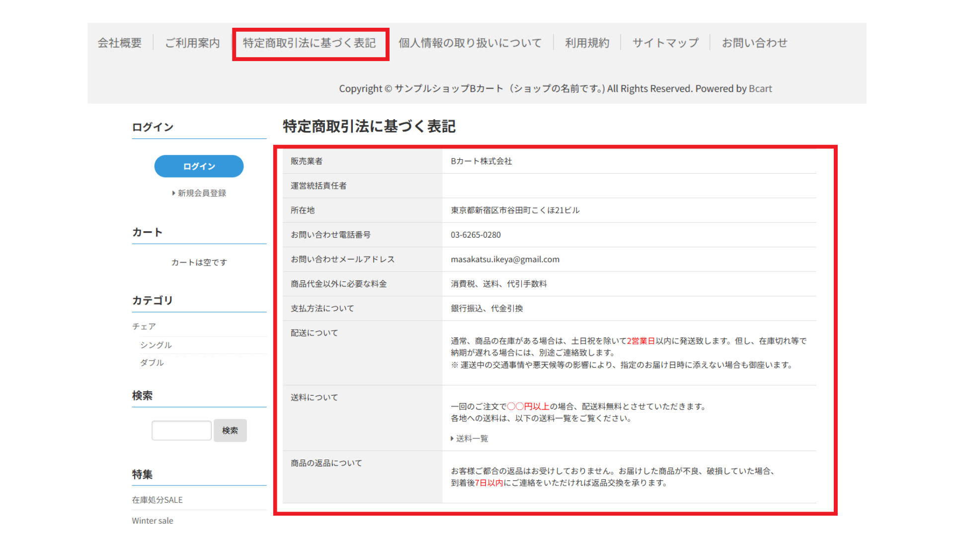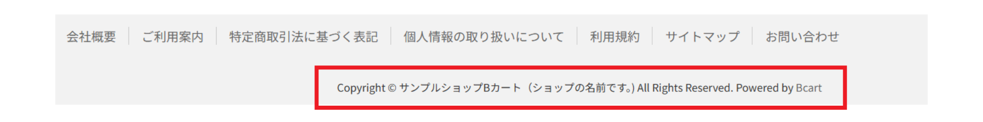 (Copyright © サンプルショップBカート(ショップの名前です。)