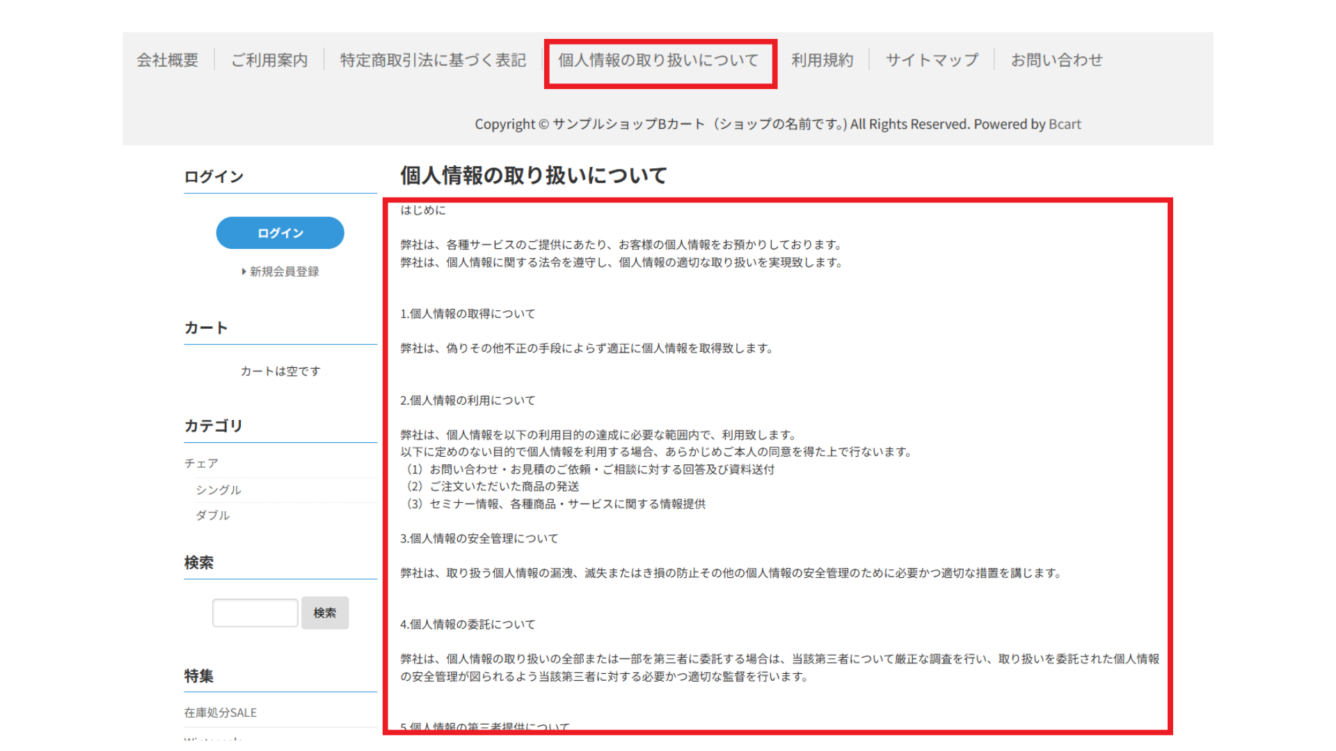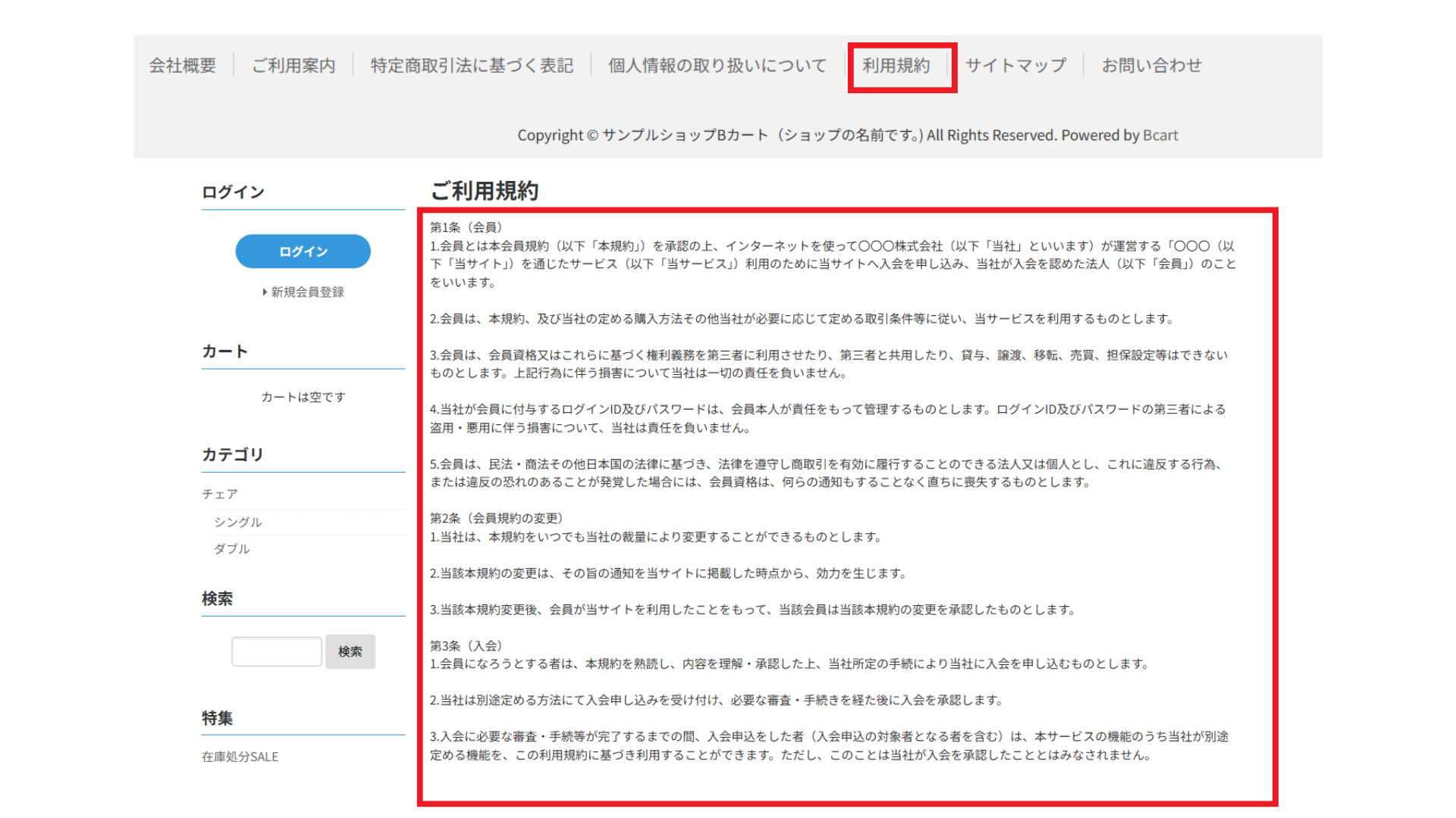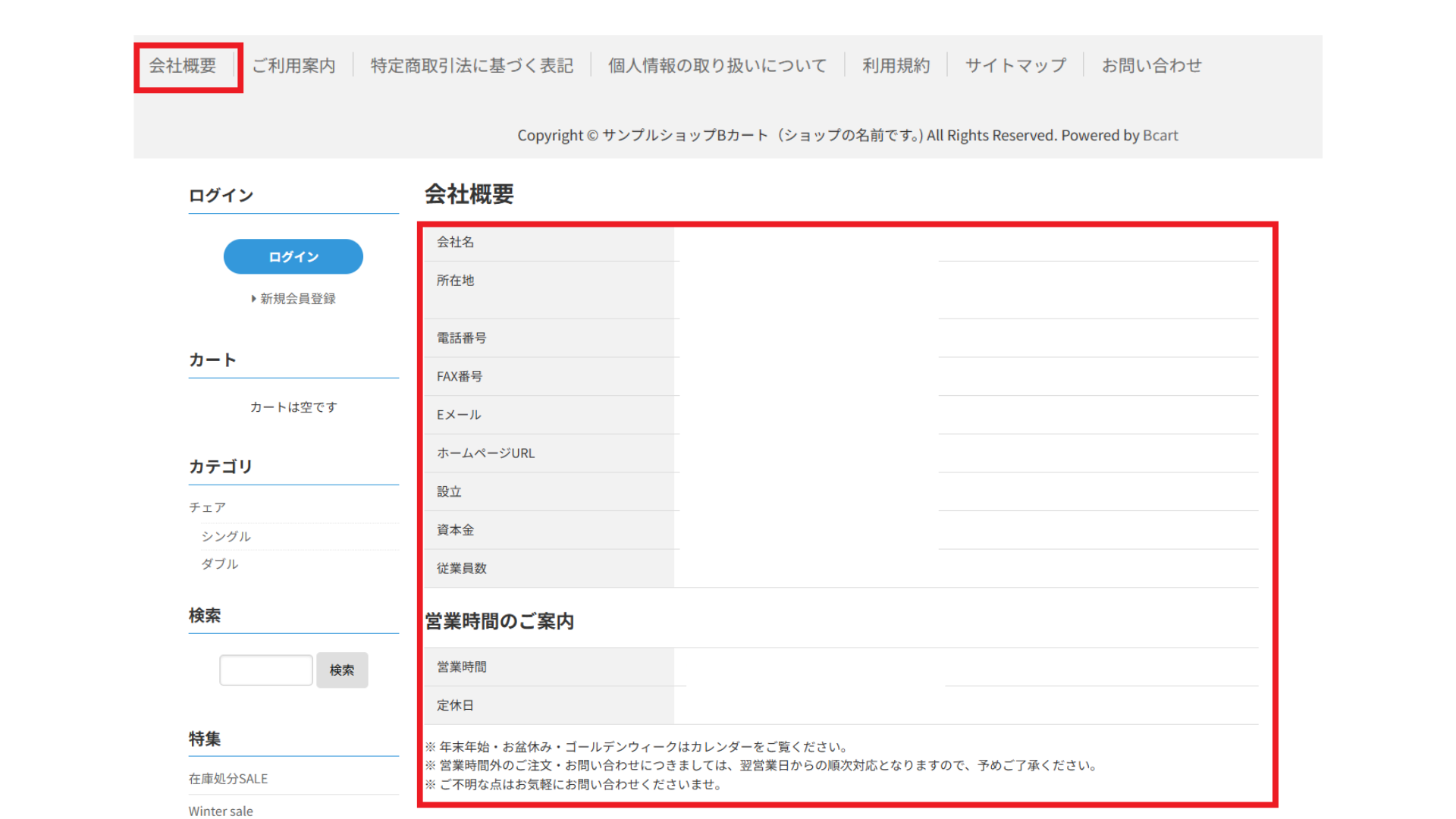(Copyright © サンプルショップBカート(ショップの名前です。)
