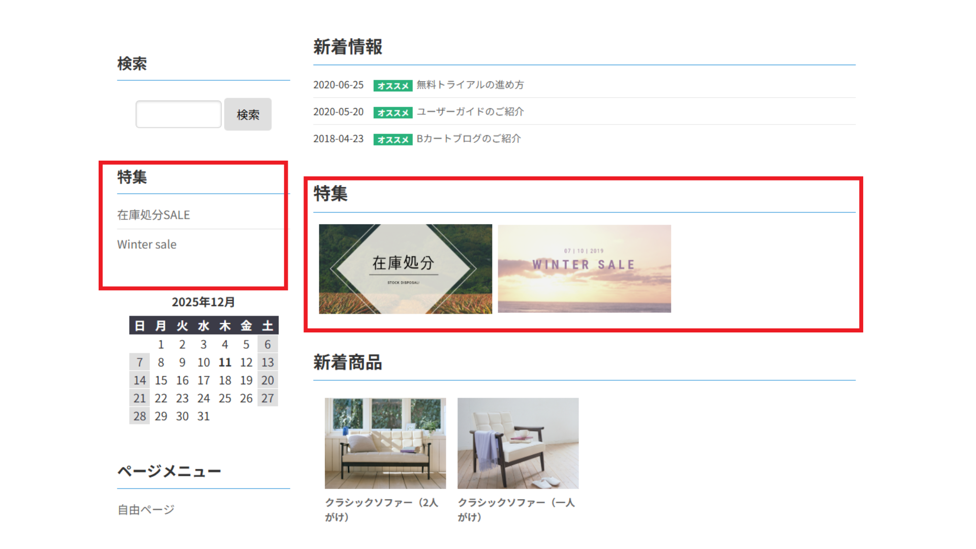 デザイン管理 > サイドレイアウト > 特集【非表示】