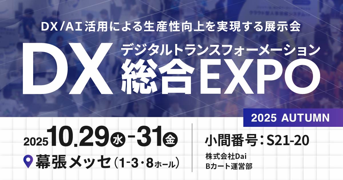 2025年10月29日(水)・30日(木)・31日(金)の3日間、幕張メッセにて開催される「DX 総合EXPO 2025 秋 東京」に出展いたします。