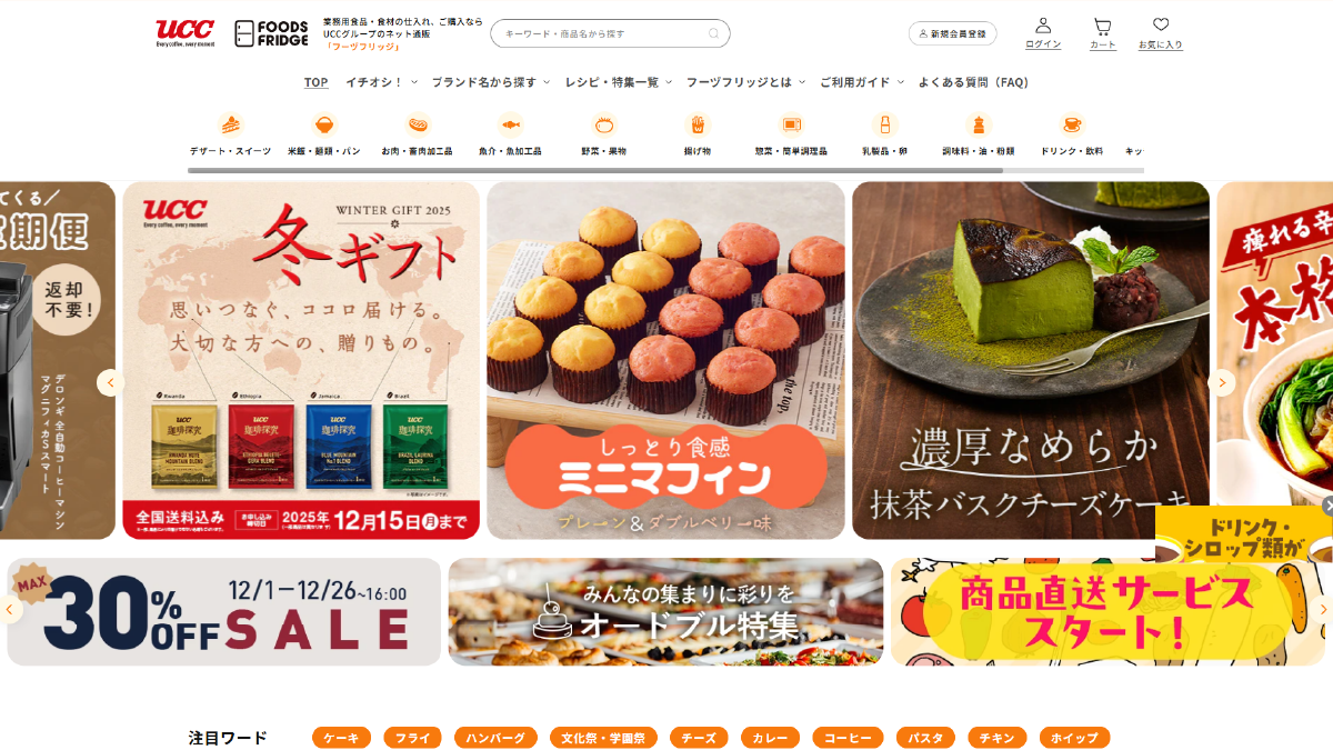 業務用食材を扱うフーヅフリッジは、これまで大ロットでの取引が主流だった業界において、業務用食材を1個から小ロットで仕入れたいというニーズに応えるECサイトを展開しています。飲食店は必要な食材を必要な分だけ発注できるため、在庫リスクを抑えることができ、多くの支持を集めています。